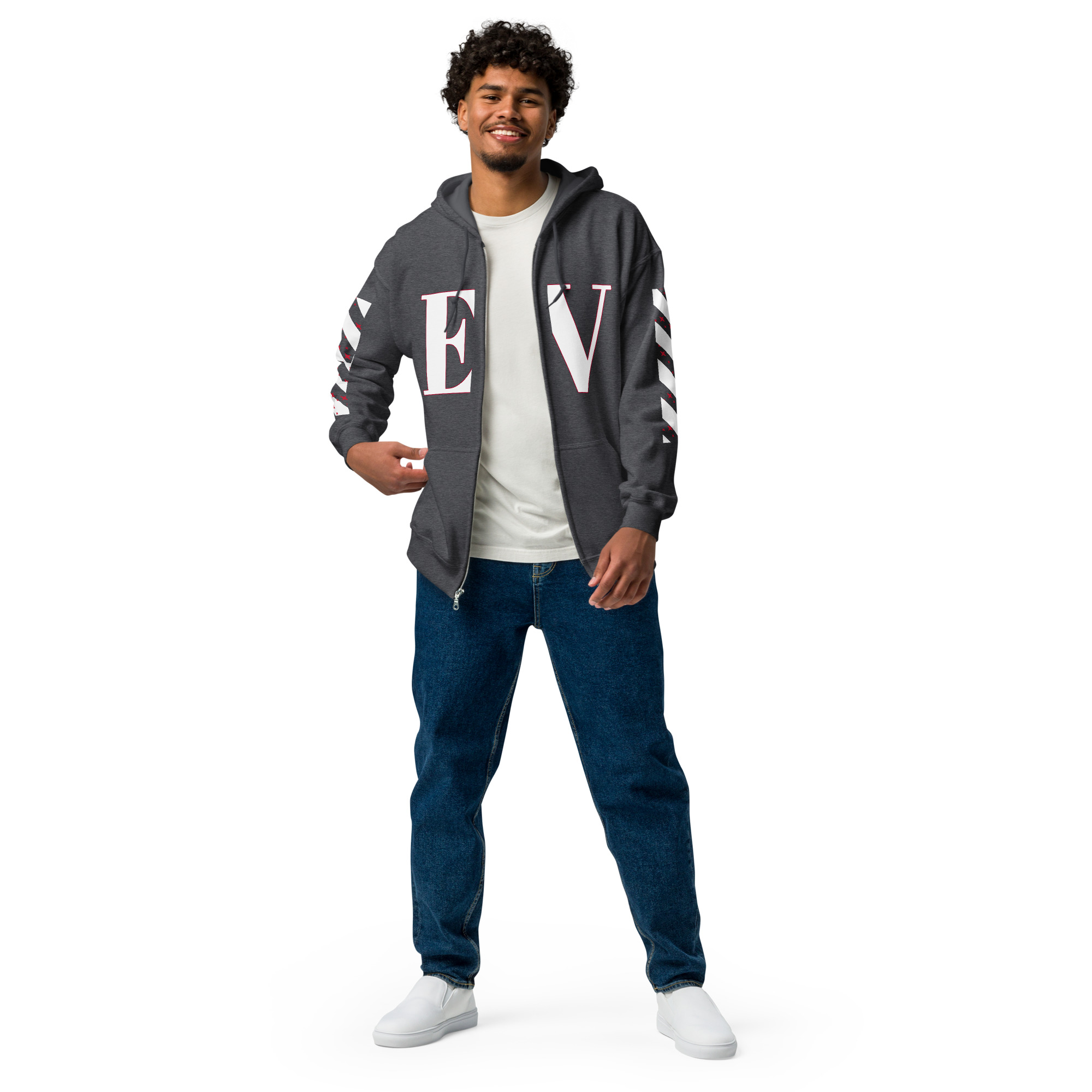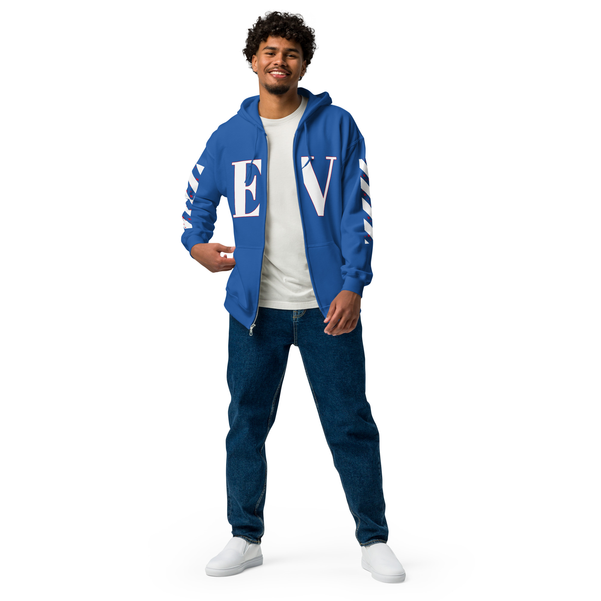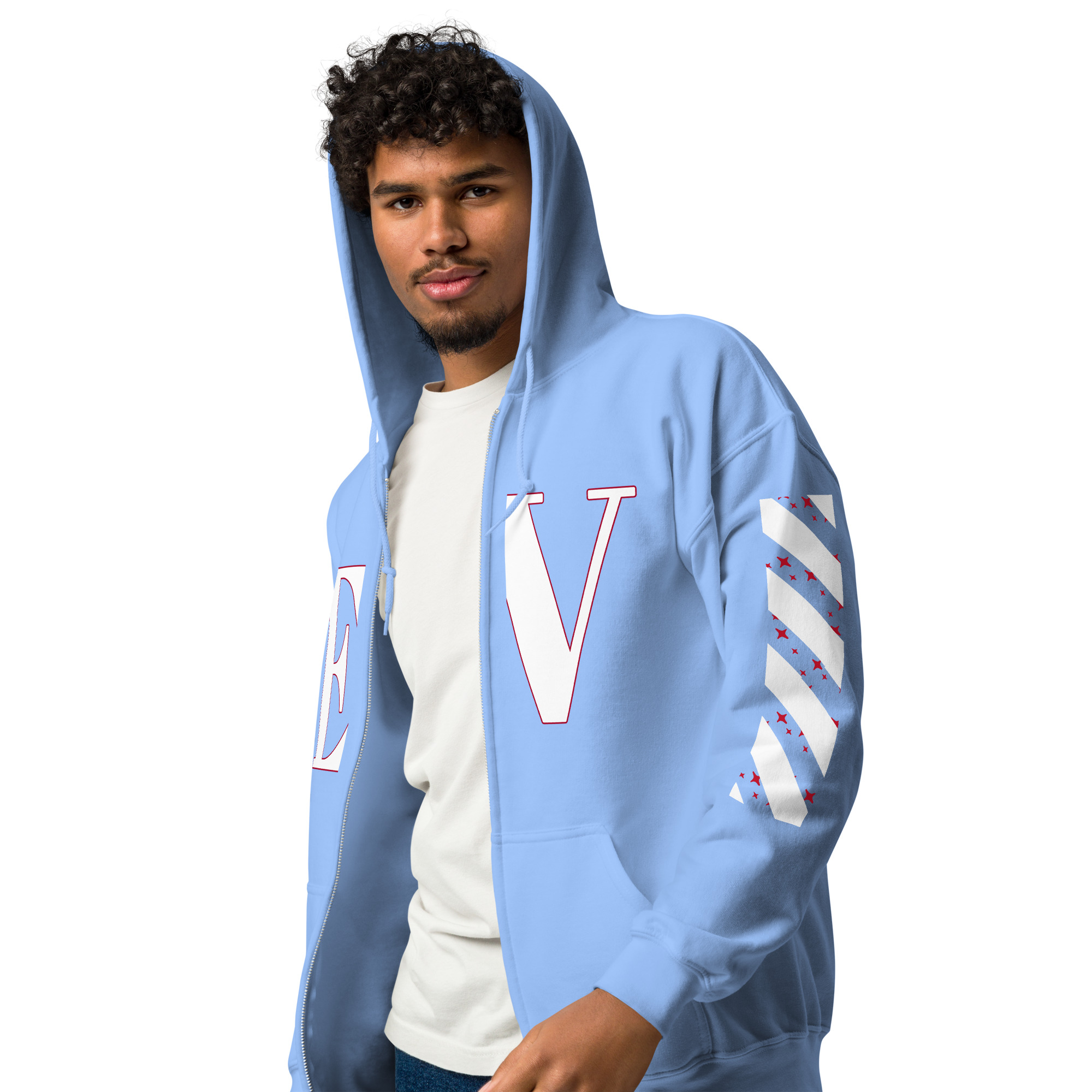 Designed with style and comfort in mind, this hoodie will quickly become your new favorite. It’s made from soft fleece inside and outside, with a sturdy metal zipper, convenient front pockets, and a hood with color-matched drawstrings.
