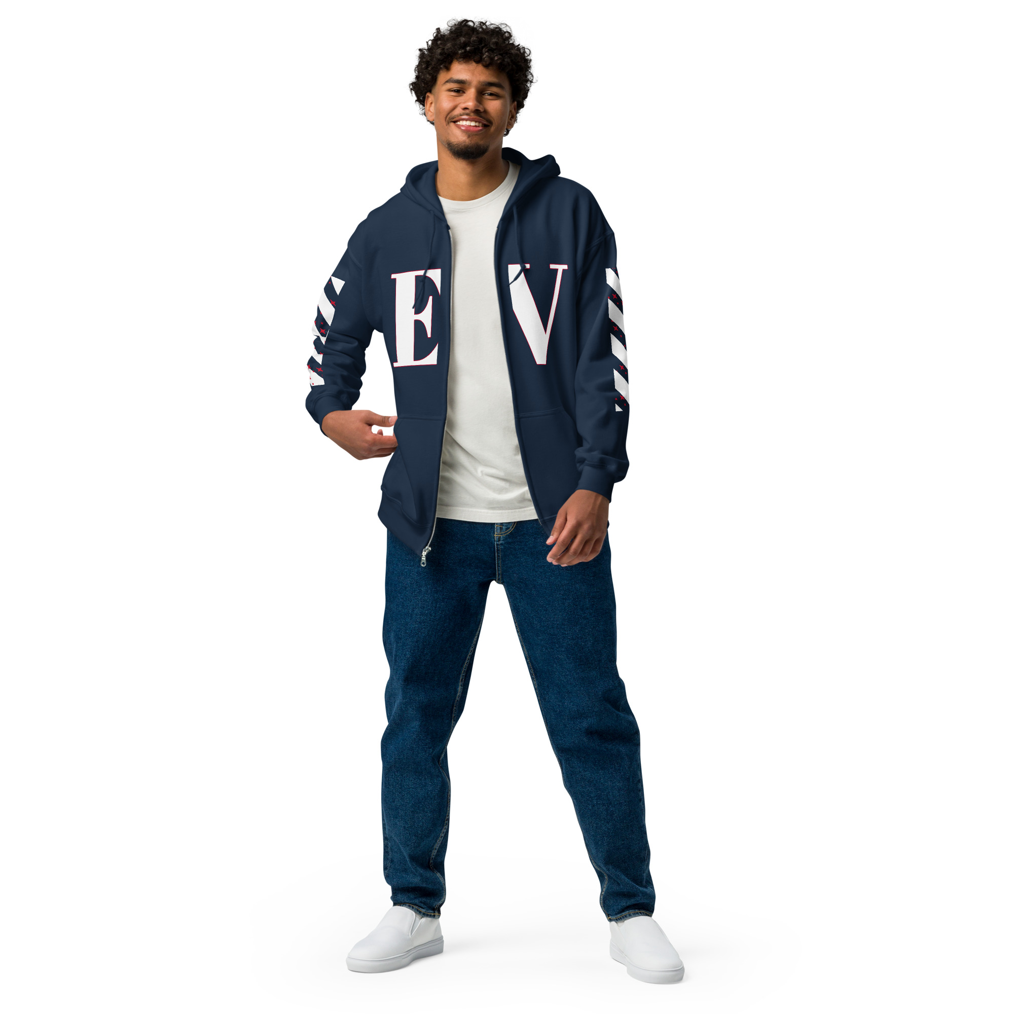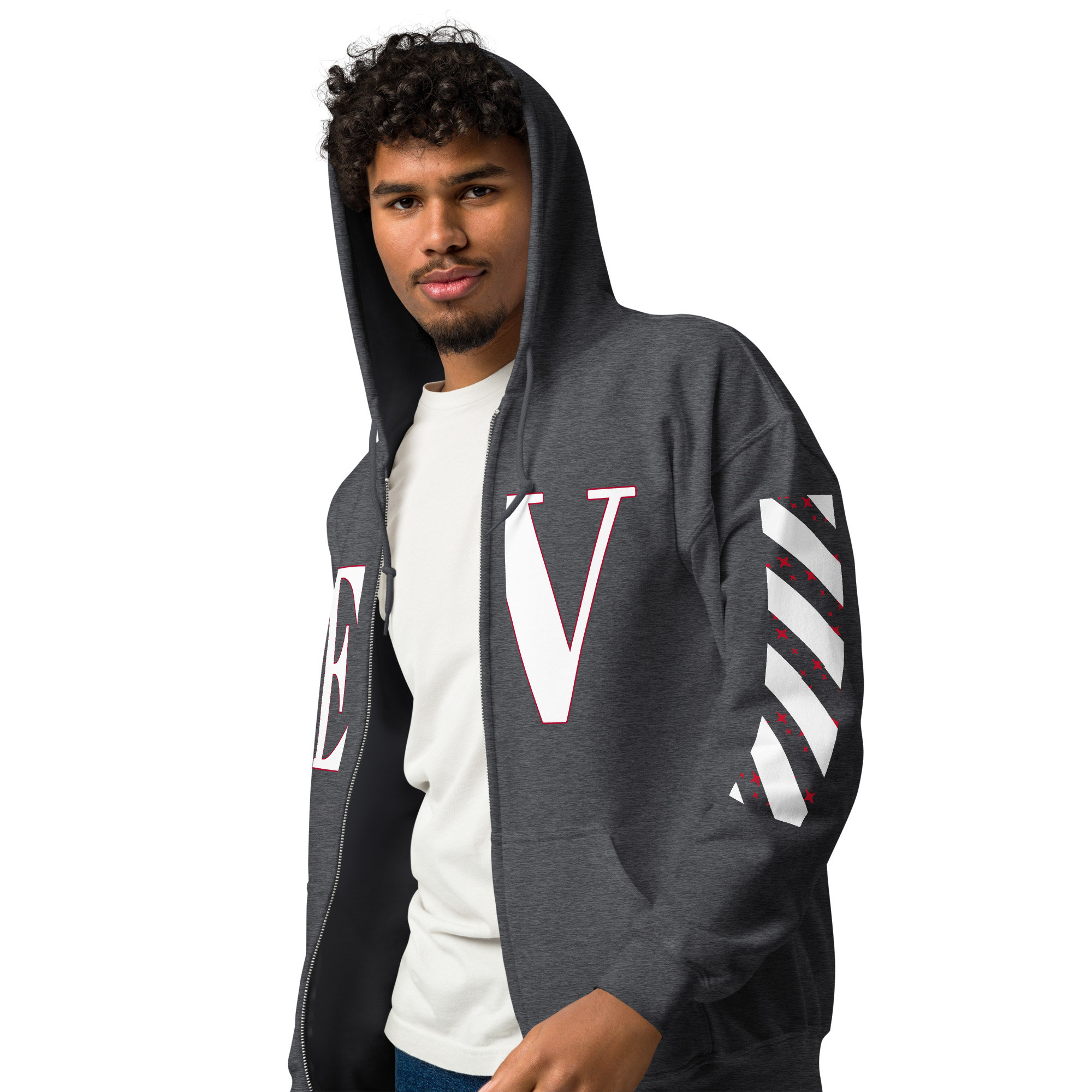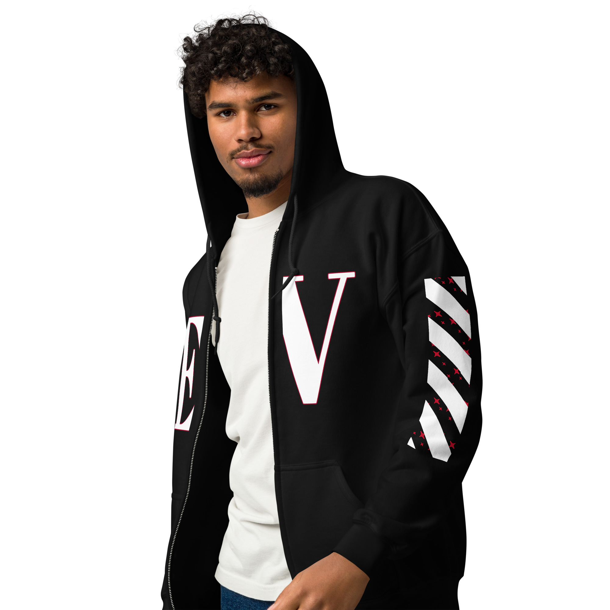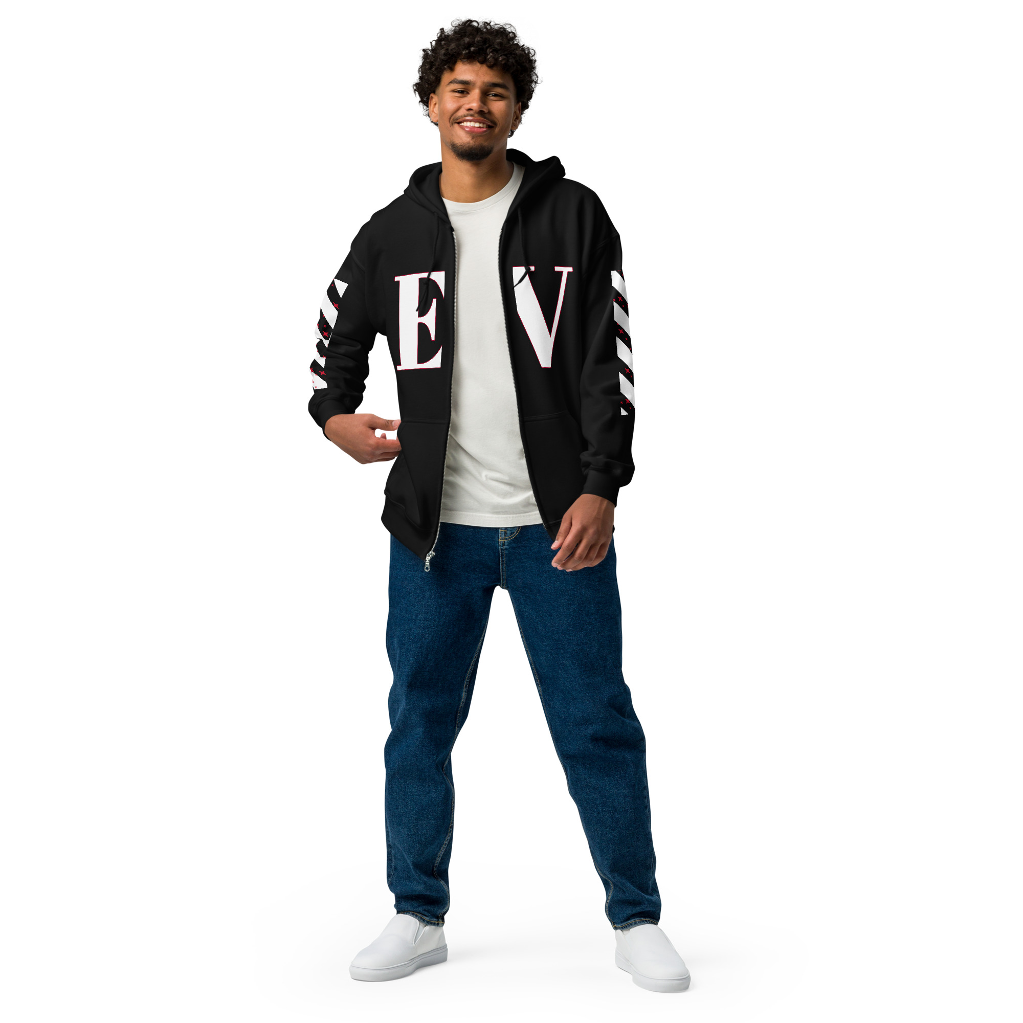Designed with style and comfort in mind, this hoodie will quickly become your new favorite. It’s made from soft fleece inside and outside, with a sturdy metal zipper, convenient front pockets, and a hood with color-matched drawstrings.